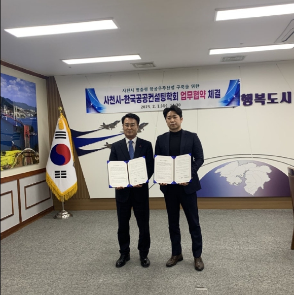사천시(시장 박동식)와 한국공공컨설팅학회(회장 하충열)는 1일 사천시장실에서 맞춤형 항공우주산업 구축을 위한 업무협약을 체결했습니다.